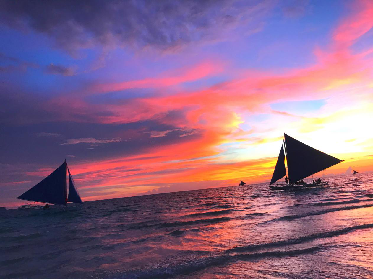 長(zhǎng)灘最美的還是“落日風(fēng)帆”,黃昏時(shí)刻注視著那赤色與粉色交融的天空,躺在帆船兩翼感受海風(fēng)的愜意,美哉!
