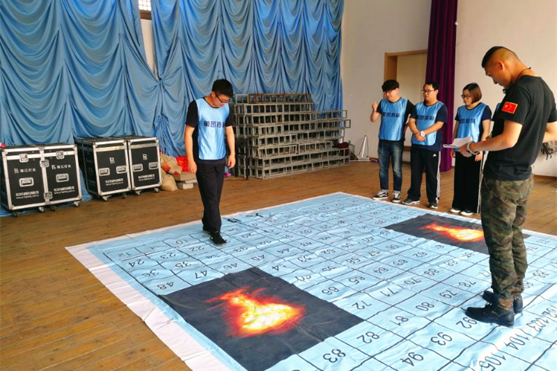 隊員們竭力探索身邊的有效資源,分工協(xié)作,配合有序,但因為密集“踩雷”始終到達不了終點。時間過半,當有人問到“蘑菇云爆炸區(qū)”能否踏入,教官不置可否,大伙兒才恍然大悟,這就是捷徑。