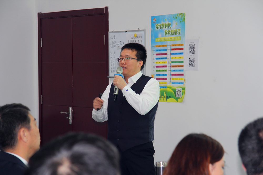 新妝宣面草見綠,春風(fēng)燕子叼新泥。一年一度的房友員工赴清華大學(xué)職業(yè)經(jīng)理訓(xùn)練中心接受培訓(xùn)提高到目前已經(jīng)進(jìn)行了十年,本次培訓(xùn)學(xué)習(xí)是由公司的16位中層管理者參加了為期六天的《領(lǐng)導(dǎo)力提升高級研修班》,載獲歸來的全體參培人員于3月2-3日和9-10日為全體員工連續(xù)做了兩場專題匯報(bào)演講。開始前公司總經(jīng)理何云昊對此次演講的目的做了簡要的說明。