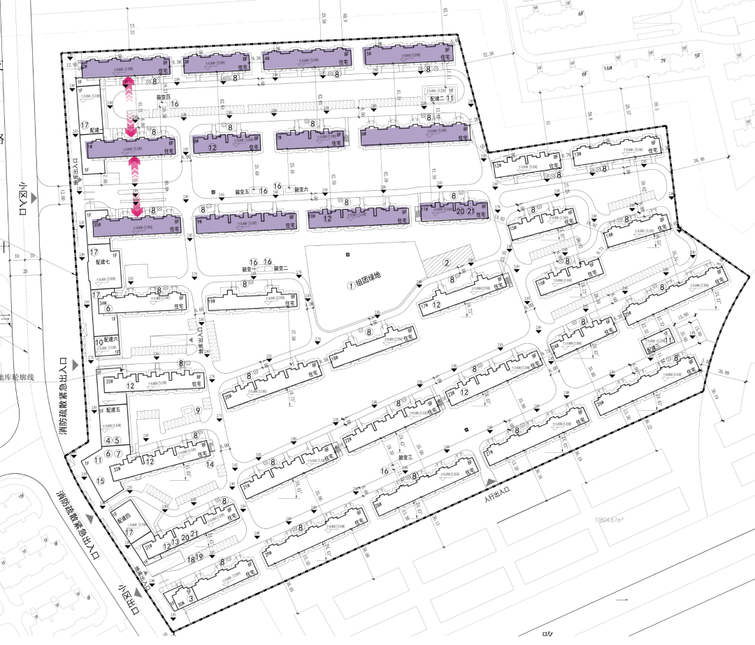 此項目高層與洋房間距用防火墻分割,間距無限小,增加小高層與洋房密度,但犧牲消防驗收風(fēng)險。