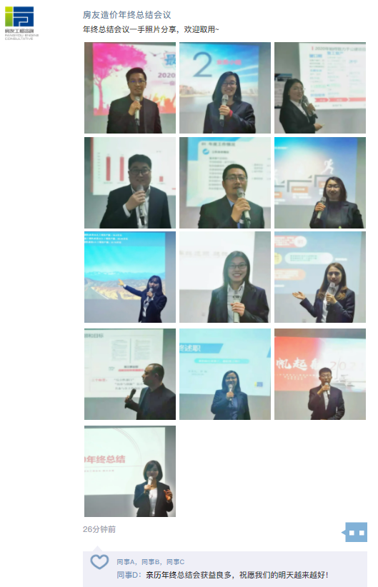 天津房友工程咨詢(xún)有限公司副總經(jīng)理陳錦華在聆聽(tīng)部長(zhǎng)述職后作2020年度分公司年終總結(jié),她肯定了分公司全體同事在2020年里的付出與收獲,并總結(jié)道: