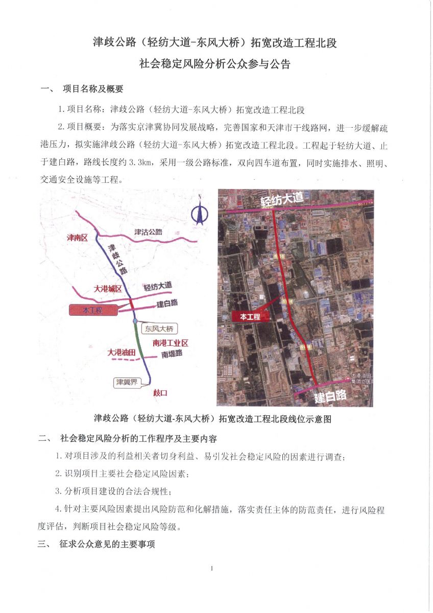 津歧公路(輕紡大道-東風大橋)拓寬改造工程北段社會穩(wěn)定風險分析公眾參與公告