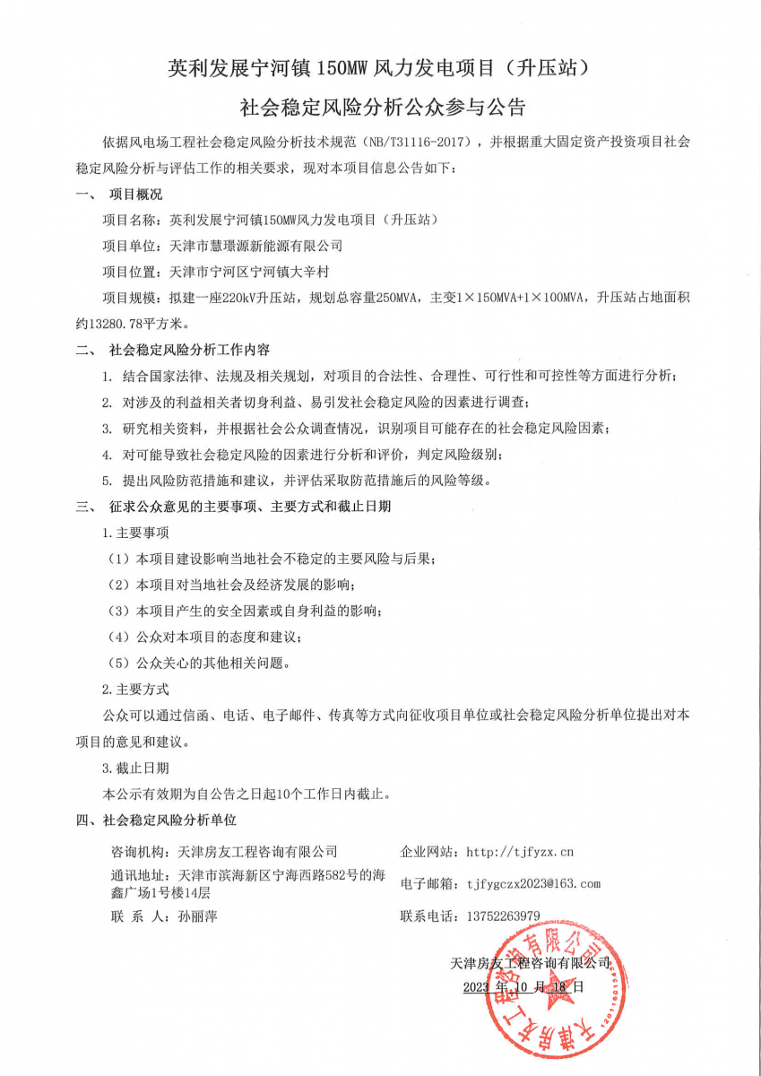 英利發(fā)展寧河鎮(zhèn)150MW風(fēng)力發(fā)電項(xiàng)目(升壓站)社會(huì)穩(wěn)定性風(fēng)險(xiǎn)分析